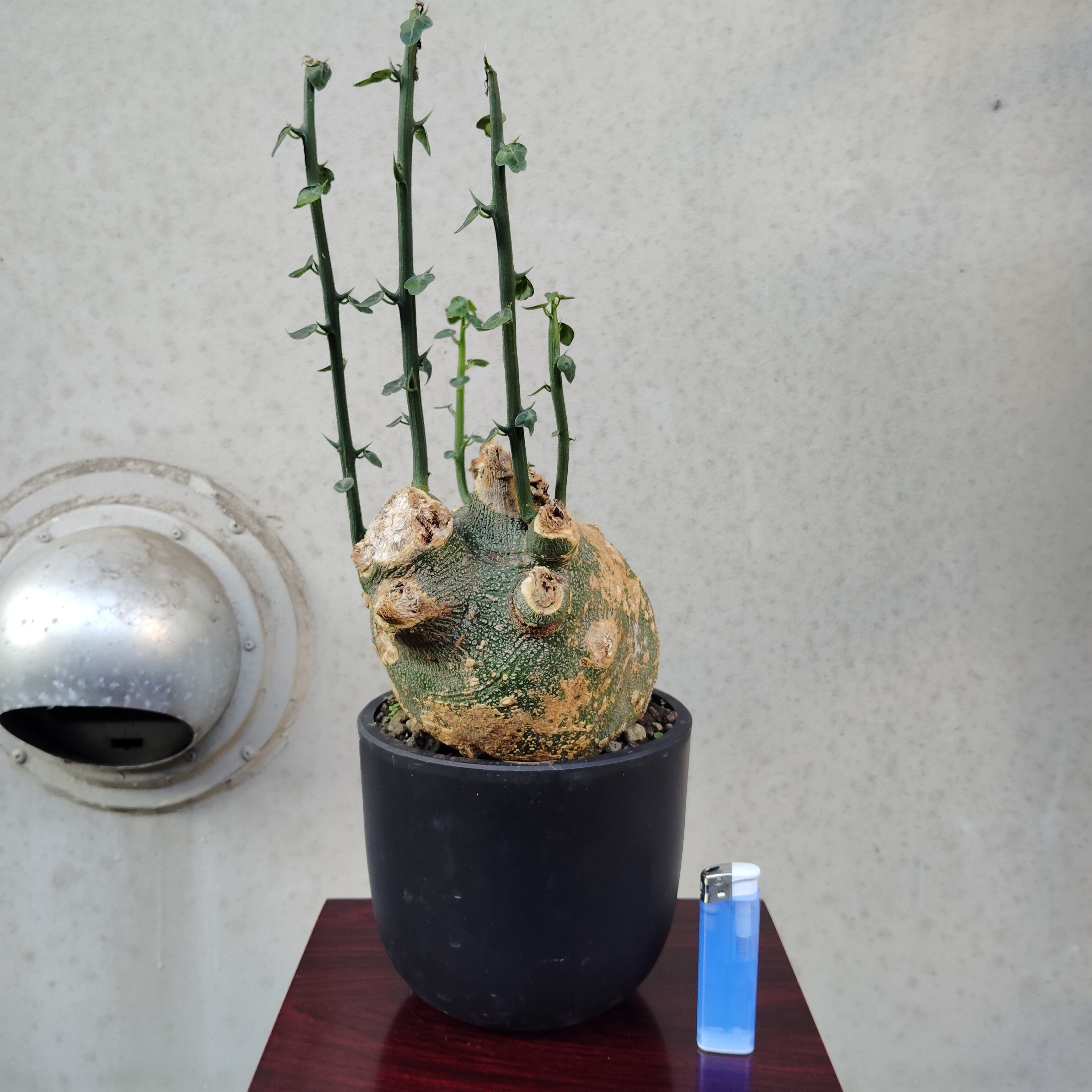 寒くなり、葉を落として来たら休眠に入るので、なるべく10℃を下回らない所に置いて、月に数回ごく少量の水を与え、細根の枯死を防いで下さい。